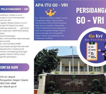 Melalui RUANG TAMU VIRTUAL, pencari keadilan yang ingin mencari informasi ataupun publik yang ingin datang ke Pengadilan Negeri Depok dapat melalui Ruang Tamu Virtual. Aparatur Pengadilan Negeri Depok dapat bertemu tamu melalui aplikasi ZOOM dengan ID : 85827868337 dan Passcode: pndepok dengan terlebih dahulu mengisi buku tamu pada link :